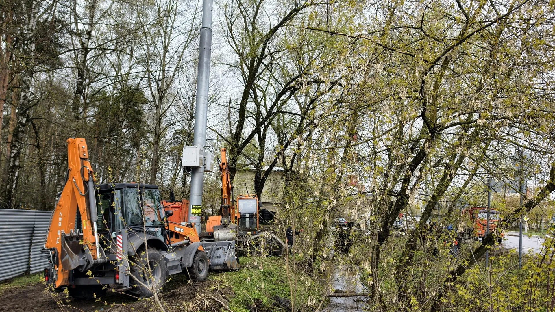 В городе Орехово-Зуево продолжается работа по ликвидации последствий непогоды. Бригада рабочих от местного комбината благоустройства приступила к уборке упавших деревьев на улице Матросова у дома №23.