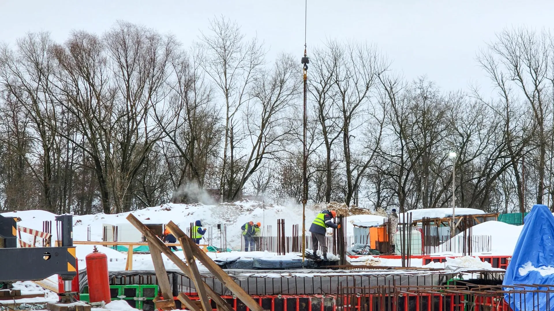 Общая площадь участка, на котором ведется строительство, составляет 13,7 тысячи квадратных метров. В дальнейшем здесь проведут внешние инженерные сети — водоснабжение и канализацию.