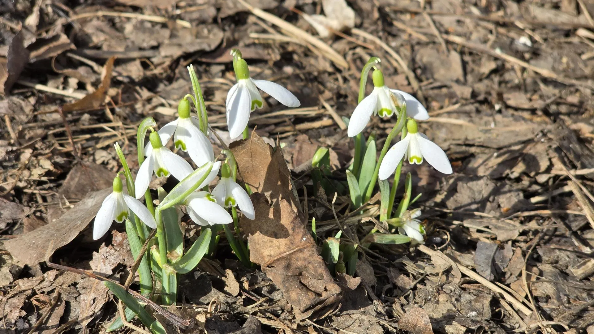 В Коломне, несмотря на то что снег еще не везде растаял, на городских клумбах уже видны признаки весны. Среди прошлогодней листвы и влажной земли пробиваются белые подснежники, голубые пролески и яркие крокусы — первые вестники тепла.