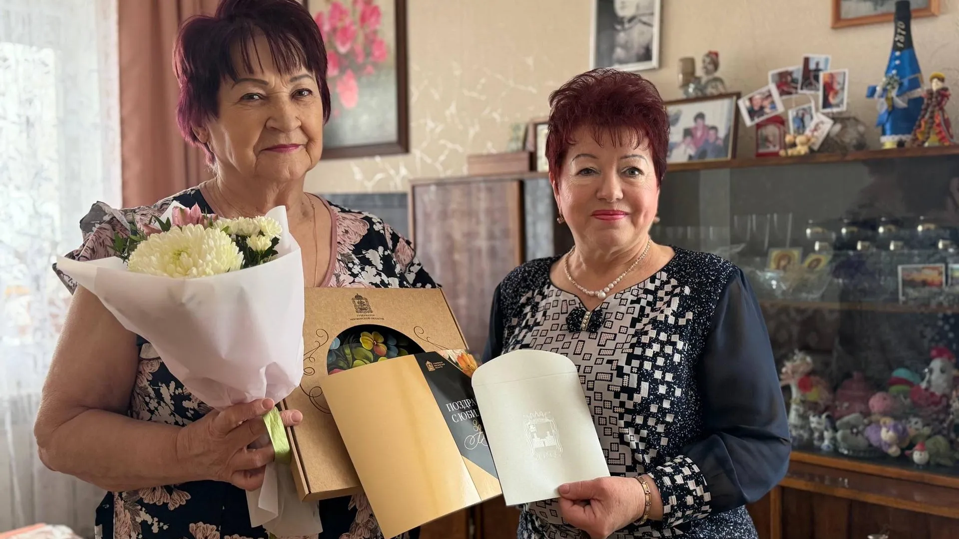 Встреча прошла в домашней обстановке. Нина Истратова передала имениннице поздравления от губернатора Московской области Андрея Воробьева и главы округа Дениса Мордвинцева. Она вручила цветы и памятный подарок.