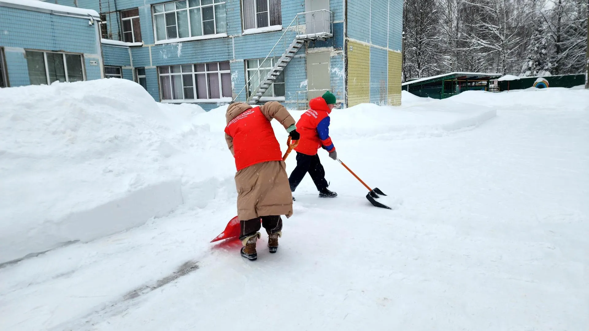 С самого раннего утра волонтеры активно работают: уже расчищены подъездные пути, дворы, детские площадки, территории нескольких школ и садов. Сейчас основное внимание уделено площадке у детского сада «Золотой ключик». В планах на день — еще несколько важных адресов.