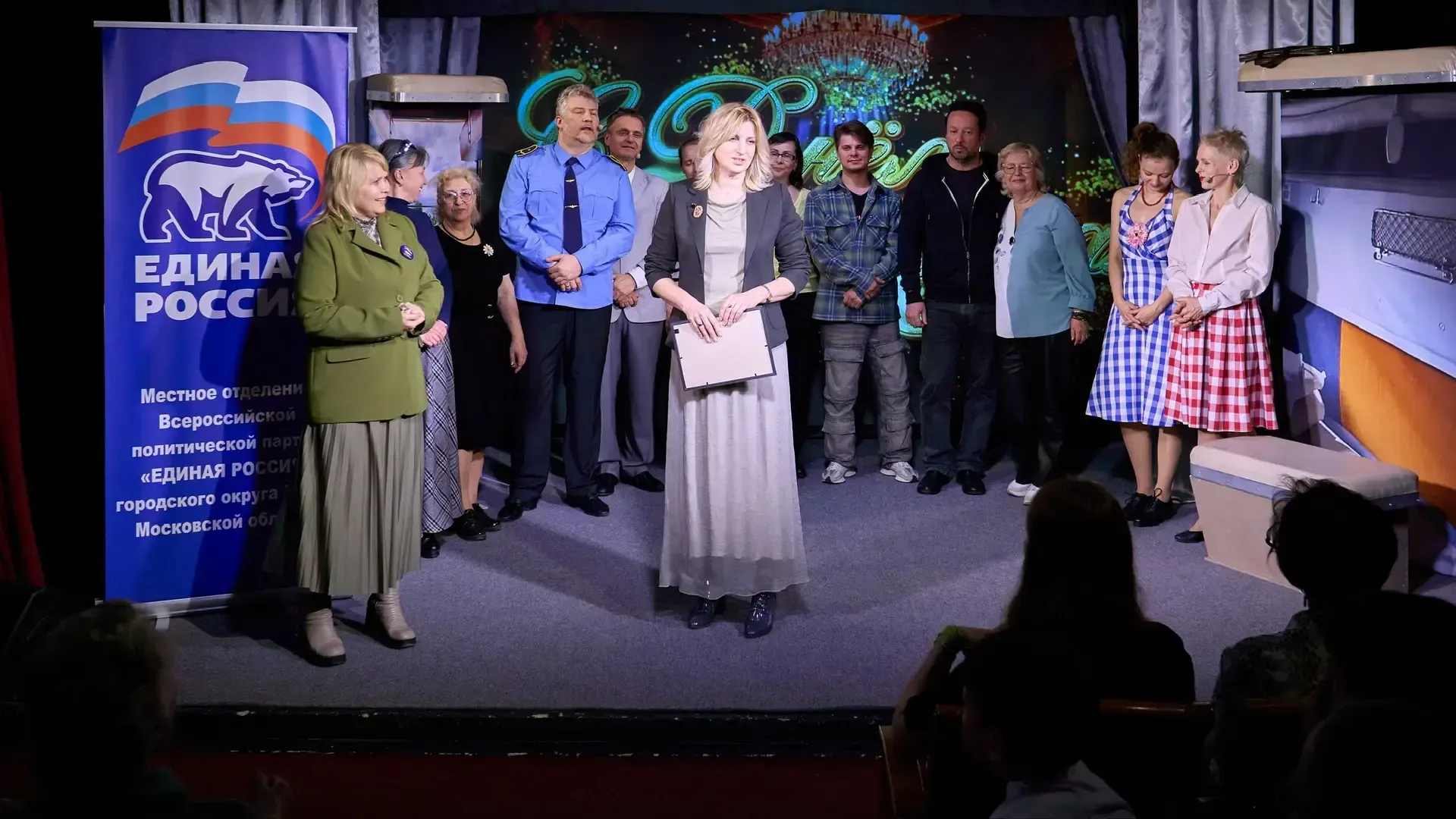 Начальник управления культуры Лобни Елена Уманская поздравила коллектив театра и вручила благодарственное письмо актеру Дмитрию Мазурову.