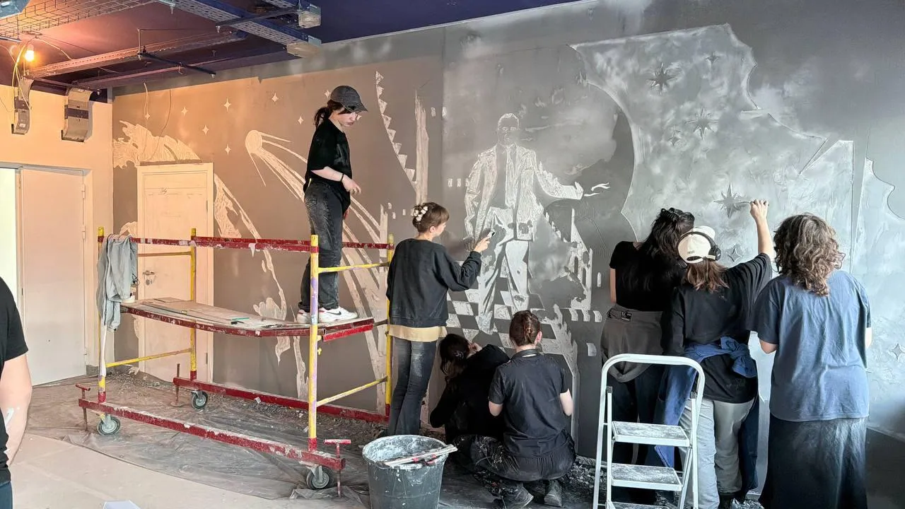 Параллельно с ремонтом в школе реализуется уникальный проект: на стенах здания художники под руководством Алексея Шилова создают рельефные картины, посвященные истории космонавтики. Общая площадь проекта составляет около 160 квадратных метров. Мастера используют технику сграффито для создания изображений, которые оживляют страницы истории освоения космоса.