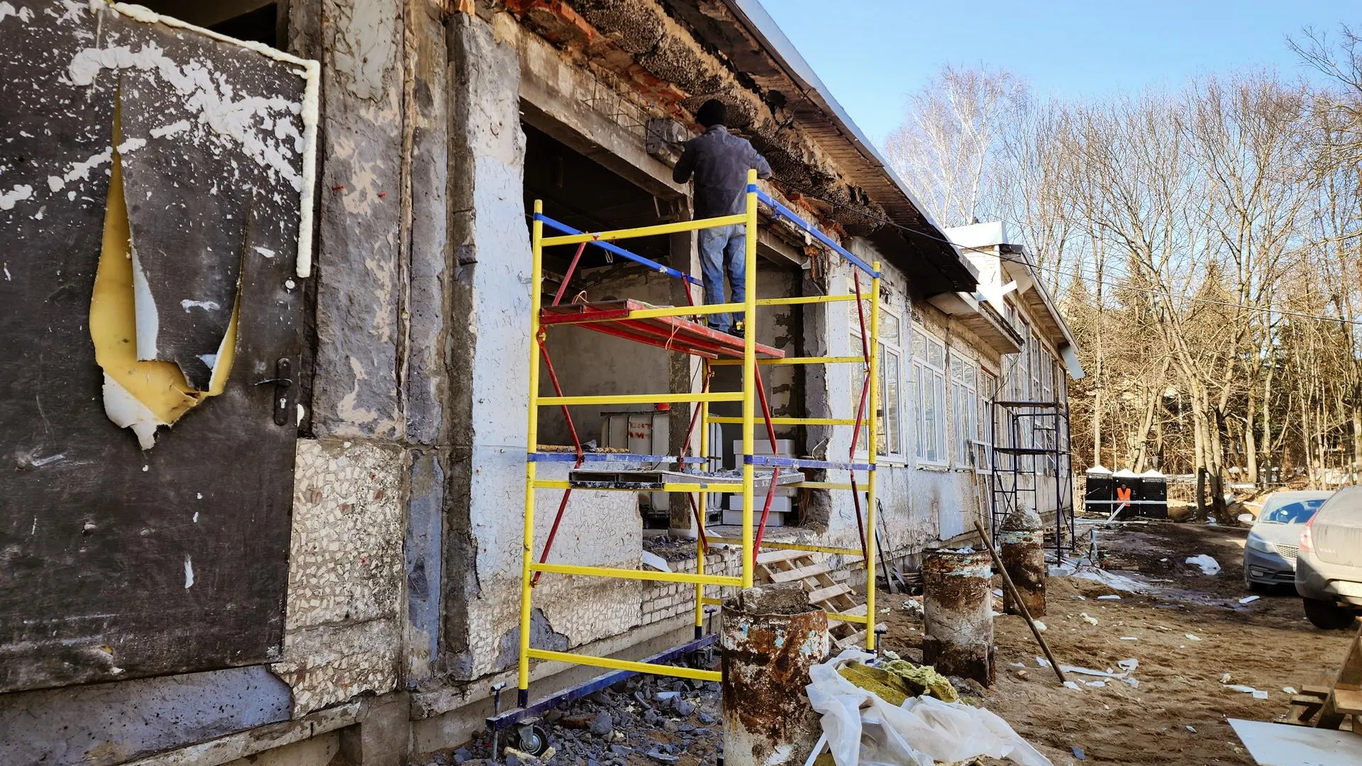 Сейчас рабочие устанавливают новые окна во всем здании, включая спортивный зал. Фасад утепляют и готовятся к его облицовке. На втором и третьем этажах активно проводят чистовые работы: стены уже оштукатурены, уложено основание для напольной плитки.