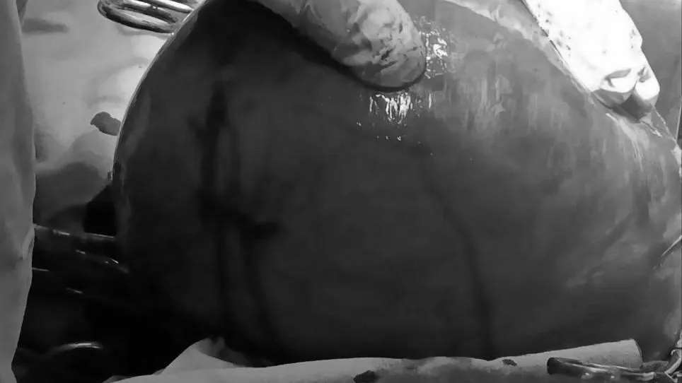 Женщина поступила в гинекологическое отделение стационара имени М. В. Гольца. О наличии миомы она знала, однако боялась операции и откладывала ее, пока не начались боли. Размер опухоли соответствовал размерам плода на шестом месяце беременности, а ее вес составлял более шести килограммов.