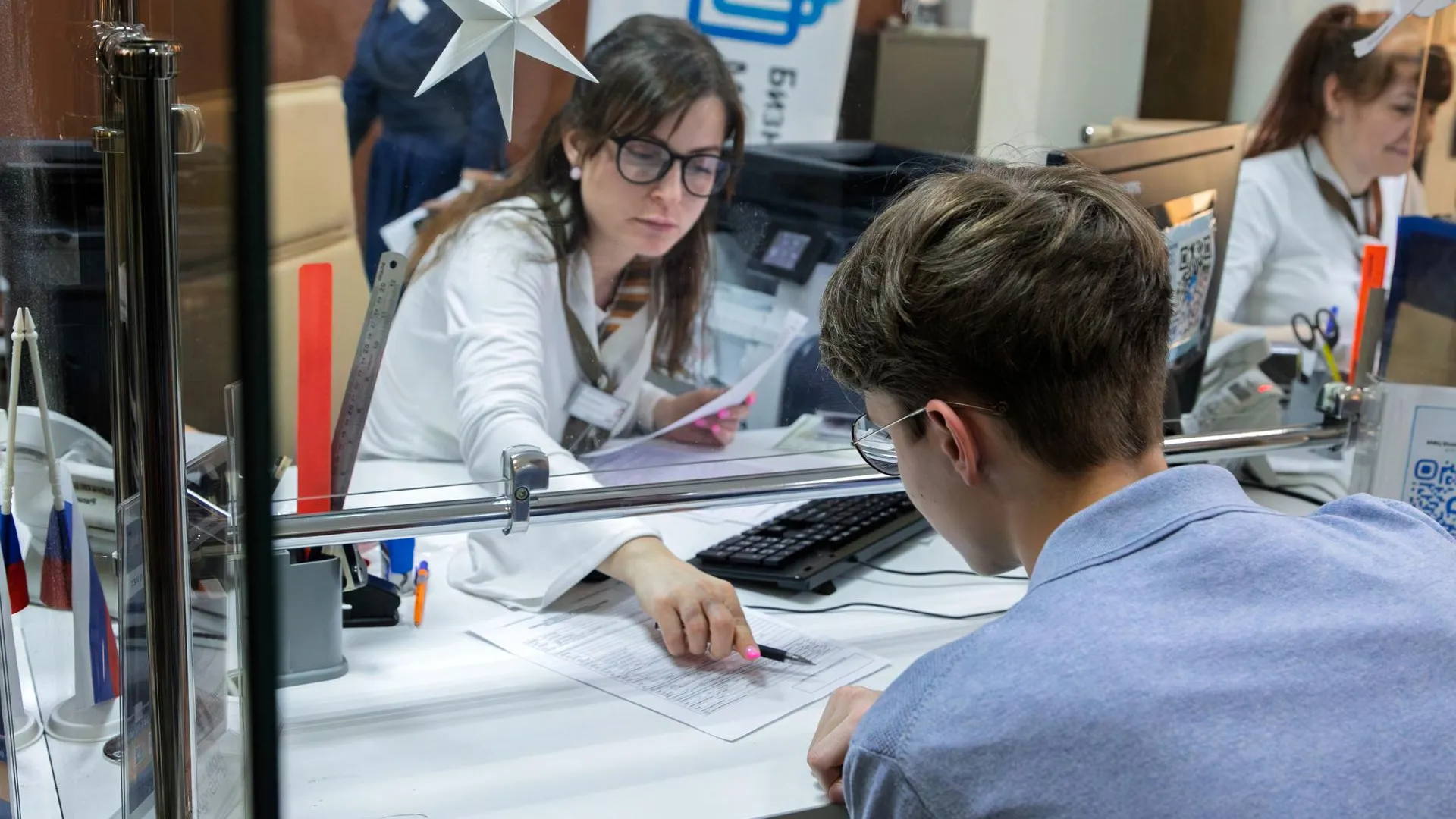 Для получения 10-летнего загранпаспорта заявителю необходимо иметь при себе российский паспорт, военный билет (для мужчин до 30 лет), а также ранее выданные загранпаспорта при их наличии. Оплатить госпошлину можно заранее по квитанции или прямо на месте в МФЦ. Чтобы ускорить процесс, специалисты советуют заранее подготовить список мест работы за последние 10 лет с точными периодами, должностями и адресами компаний. После заполнения анкеты и первичного приема сотрудник выдаст специальный штрих-код для прохода в криптокабину. Для оформления документа на ребенка обязательно присутствие законных представителей: детям до 14 лет потребуется свидетельство о рождении с отметкой о гражданстве, а подросткам от 14 до 18 лет — общегражданский паспорт.
