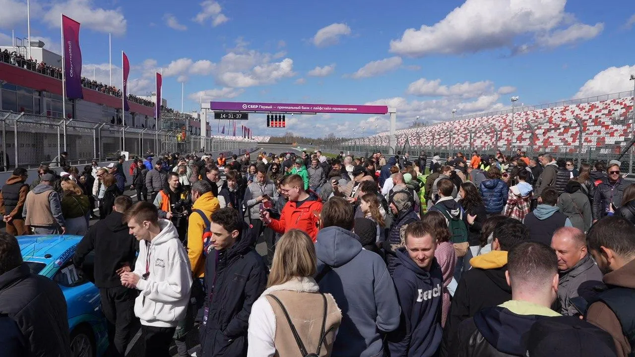 На автодроме в Волоколамском городском округе собрались ценители быстрых машин. Гости гуляют по пит-лейну, знакомятся с активностями и наблюдают за спорткарами.