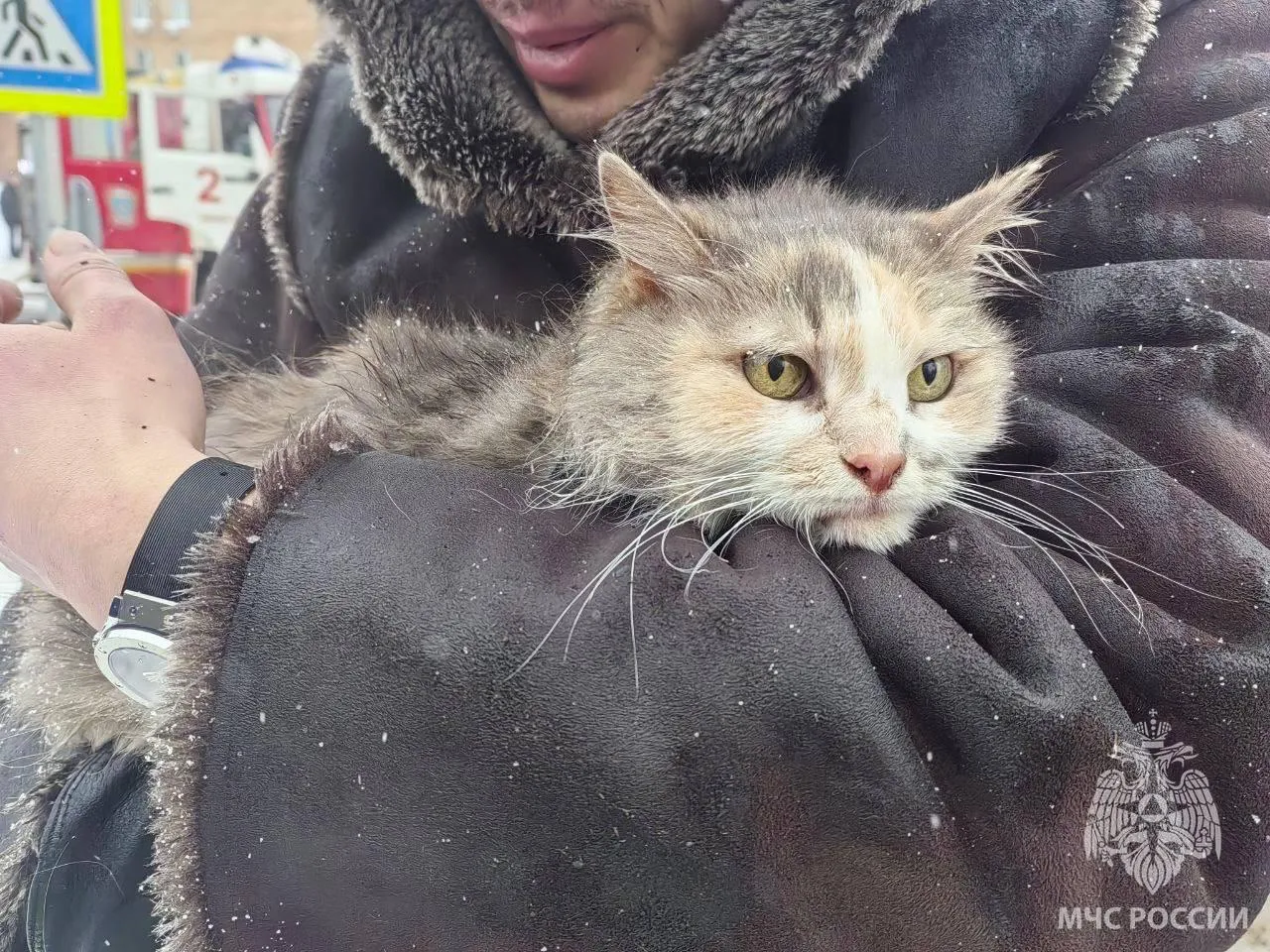 «Кошка трехцветная, дворовой масти. Фрося, 12 лет. Ее вынесли пожарные, она немного надышалась, но не критично, реанимационных мероприятий не потребовалось», — указал он.