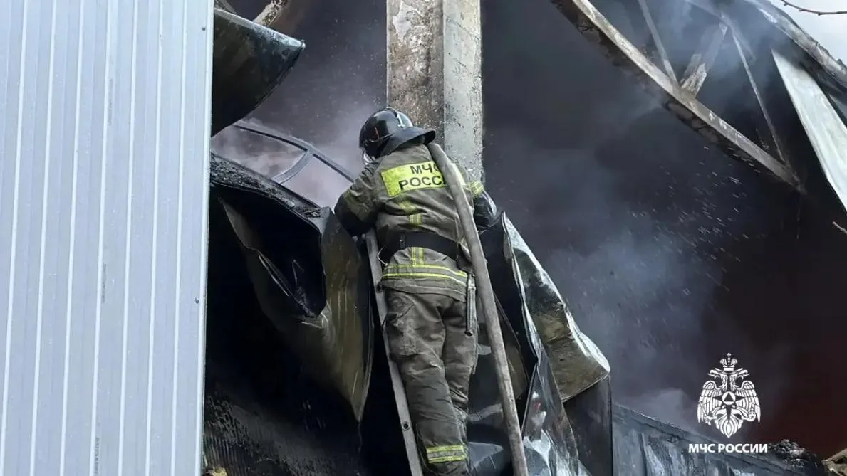 Вспыхнул склад на улице Российской. Огонь распространился на площади 2500 квадратных метров.