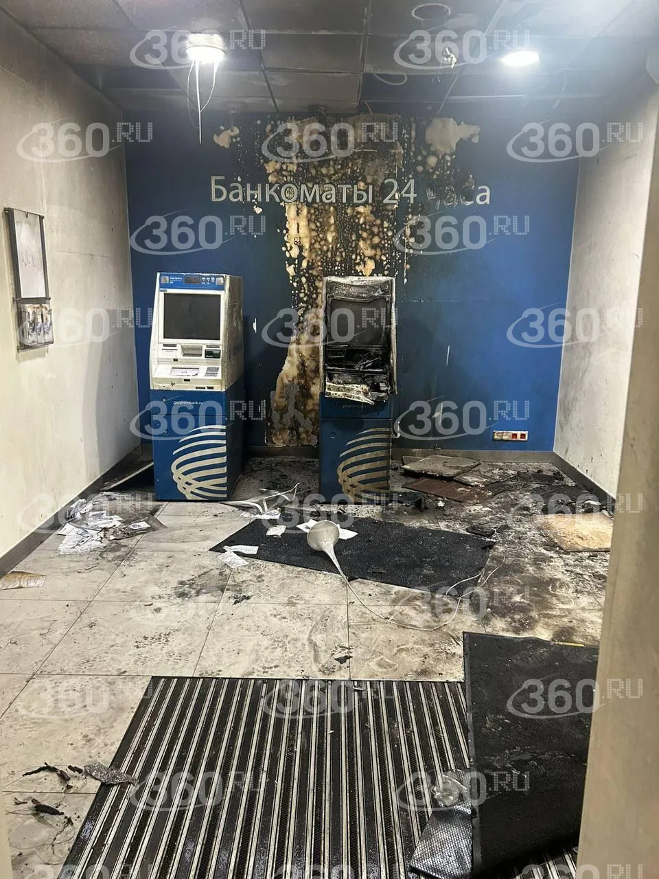 По его данным, возгорание произошло на первом этаже, площадь составила около трех квадратных метров. Горели банкомат, кассовый аппарат и часть стены.
