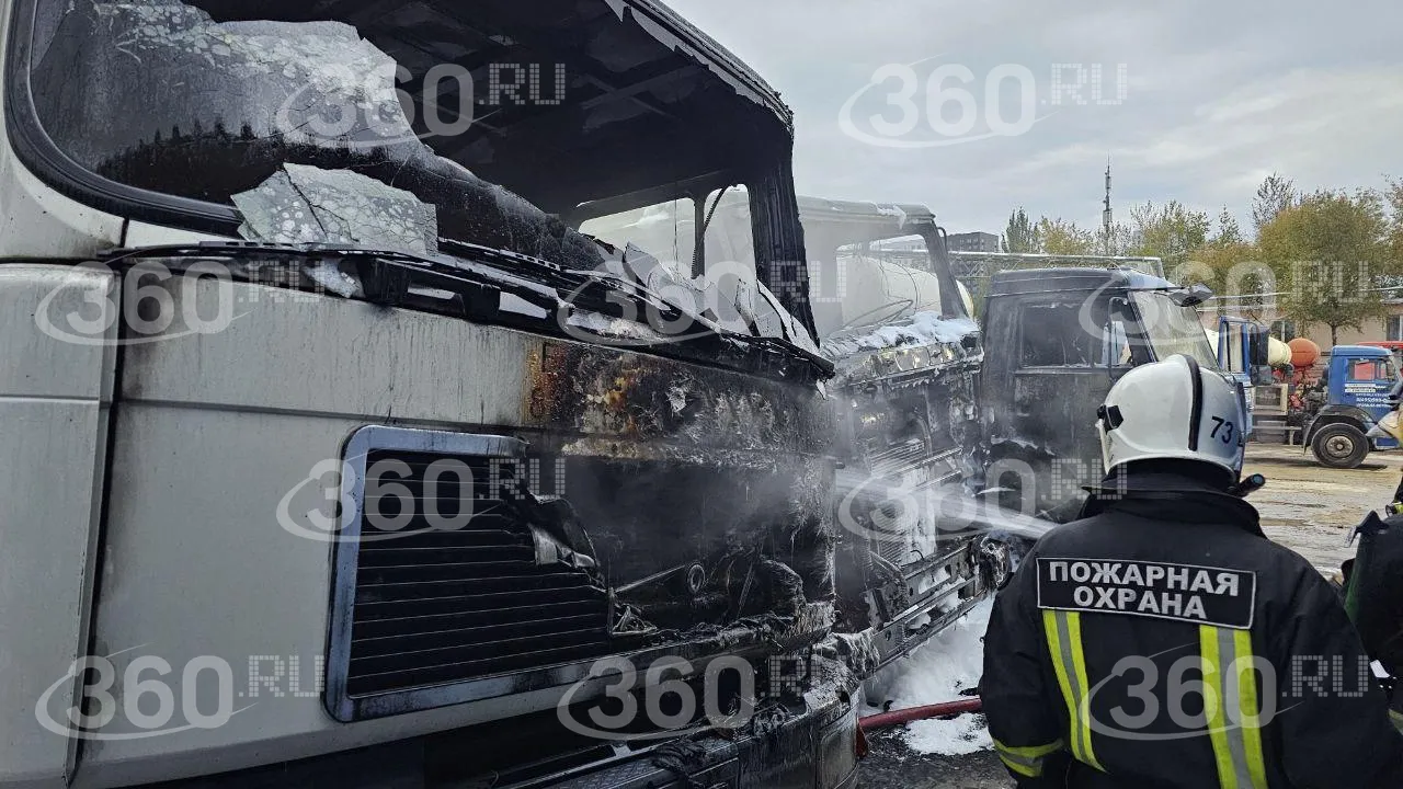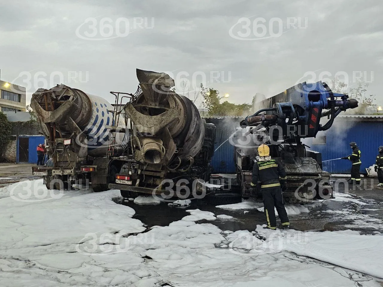 Три грузовика сгорели на бетонном заводе в Северном Медведкове