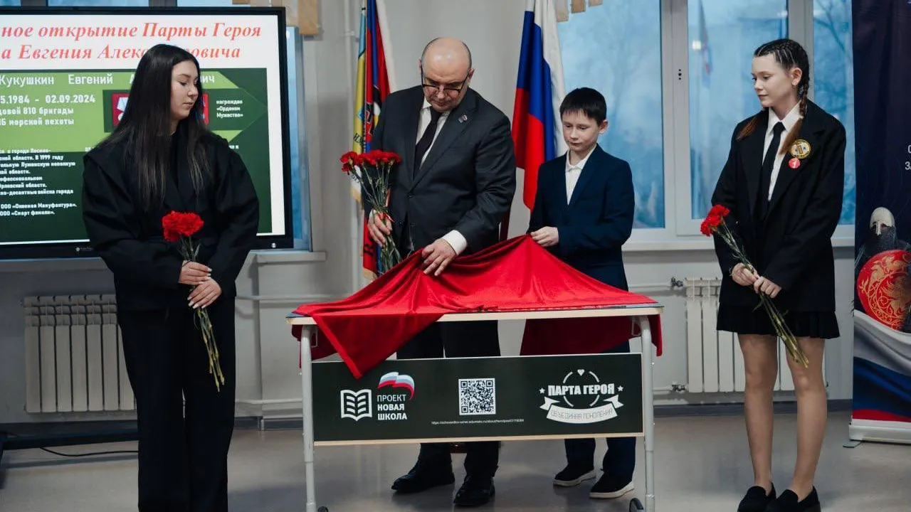 Парта героя посвящена Евгению Кукушкину, погибшему в зоне специальной военной операции. На торжественной церемонии собрались близкие бойца, педагоги и ученики школы имени Михаила Марченко поселка Свердловский, координатор фонда «Защитники Отечества» Светлана Алиферова, руководитель местного отделения Ассоциации ветеранов СВО Алексей Трегубов.