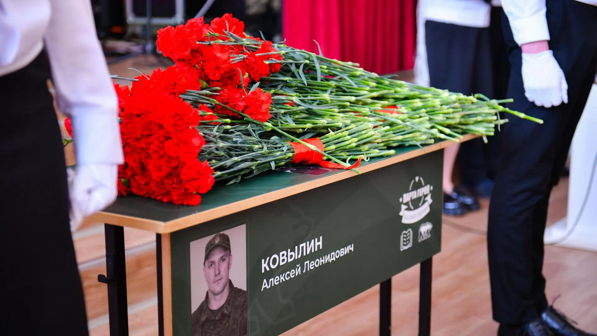 В церемонии участвовали депутат Государственной думы Ирина Роднина, глава округа Инна Федотова, лидер Движения общественной поддержки Николай Томашов и депутат Инна Монастырская. Право открыть парту предоставили Инне Федотовой и сестре героя.