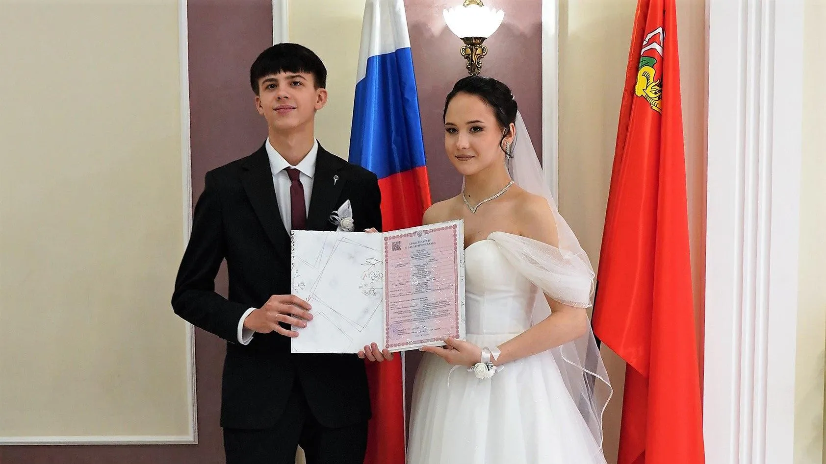 Денис и Елизавета в торжественной обстановке сказали друг другу «да». Церемония прошла в отделе ЗАГС Реутова в День многодетной семьи в Московской области, что придало событию особый смысл.