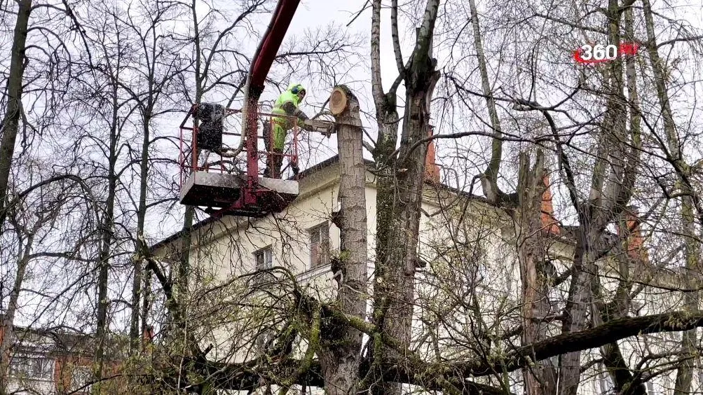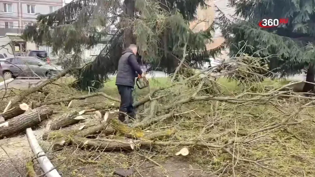 Накренившиеся из-за непогоды деревья спилили в Коломне