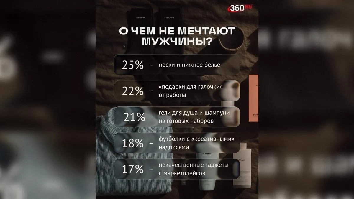 Если вам дороги отношения, то при выборе подарка мужчине на 23 Февраля лучше отказаться от носков, геля для душа, а также букетов из таранки или колбасы. Что еще входит в топ худших идей на День защитника Отечества — в материале 360.ru.