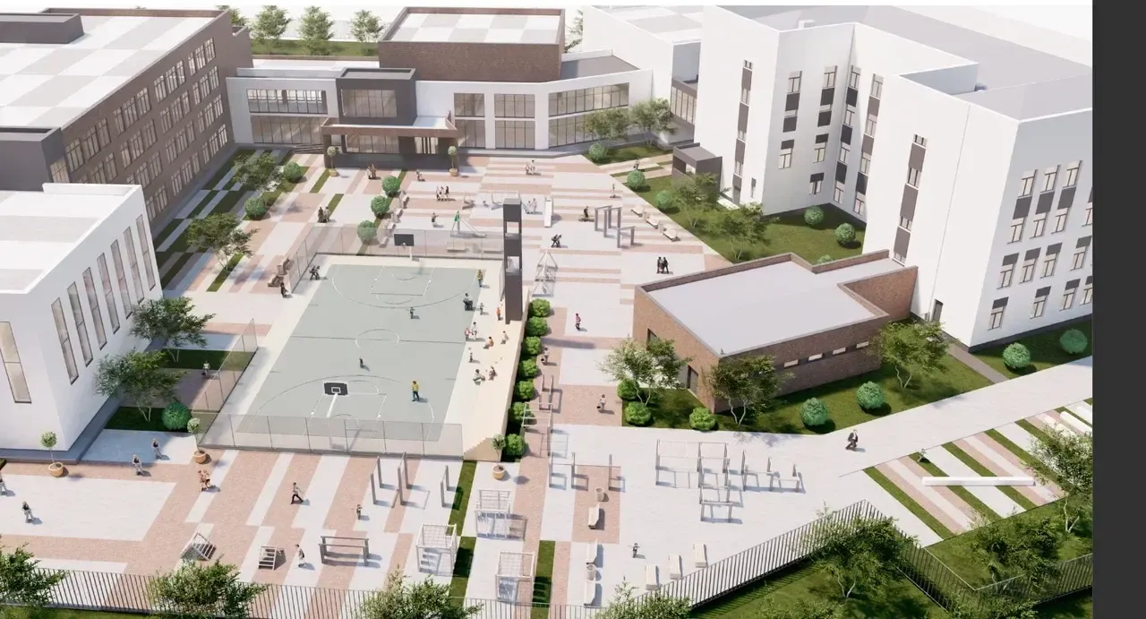 Пристройку соединят с основным корпусом при помощи теплого стеклянного перехода. В 2027 году в главном здании проведут капитальный ремонт, а позже там разместят младшеклассников.