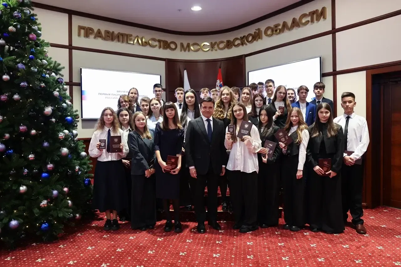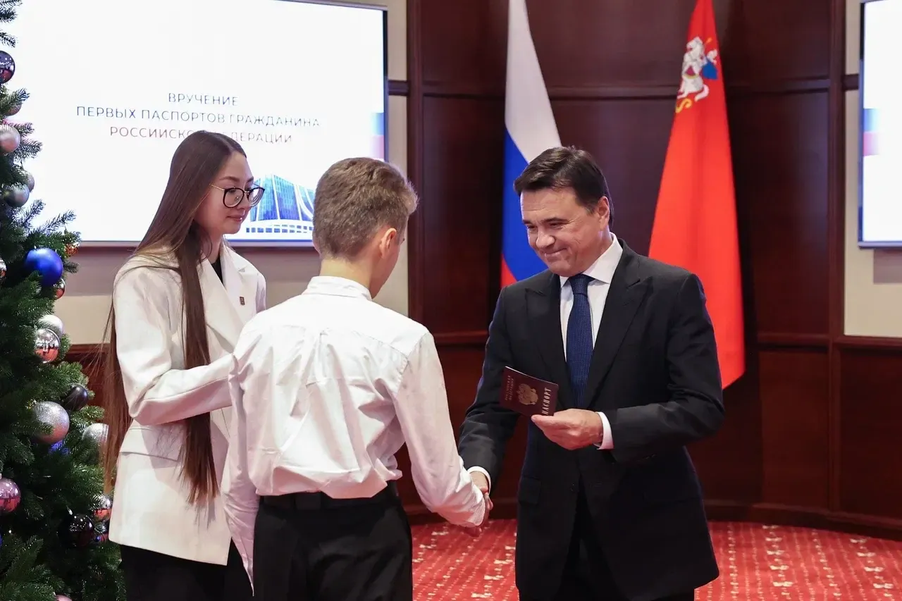 Торжественная церемония вручения первых паспортов прошла в Доме правительства Подмосковья. Документы из рук губернатора Андрея Воробьева получили ребята, которые проявили себя в творчестве и спорте, а также дети участников СВО. Всего — 30 человек из 14 округов региона.