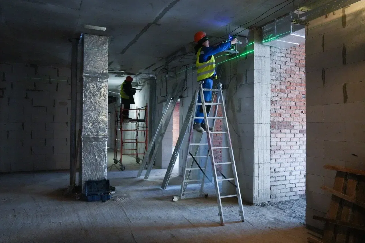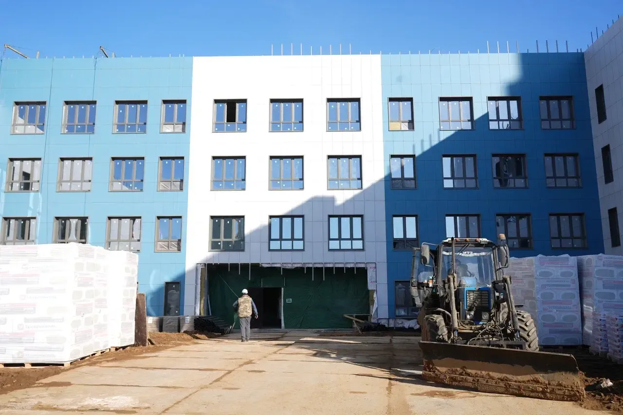 Готовность школы сейчас составляет 64%. На площадке трудятся более 60 человек и шесть спецмашин. Сейчас они ведут внутреннюю отделку и прокладывают коммуникации.