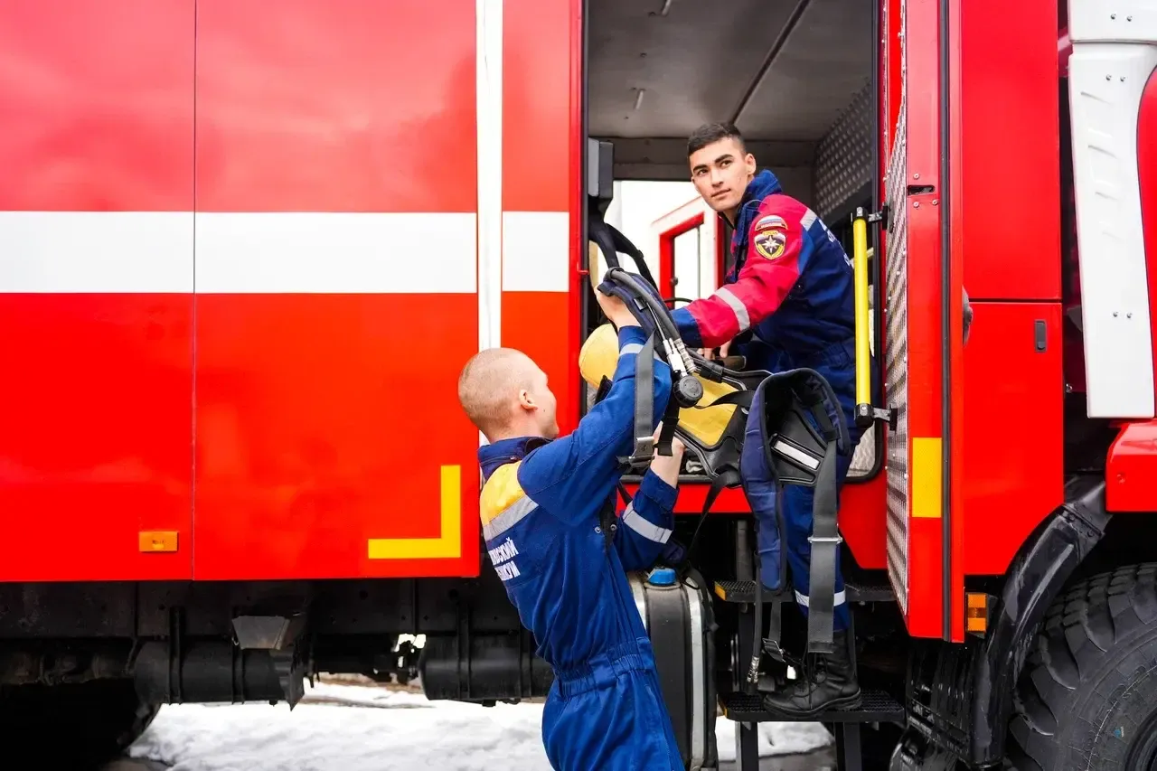 Первокурсники проходят профильные занятия и получают практические навыки. Они тренируются на настоящем пожарном полигоне и отрабатывают действия в приближенных к реальным условиях.